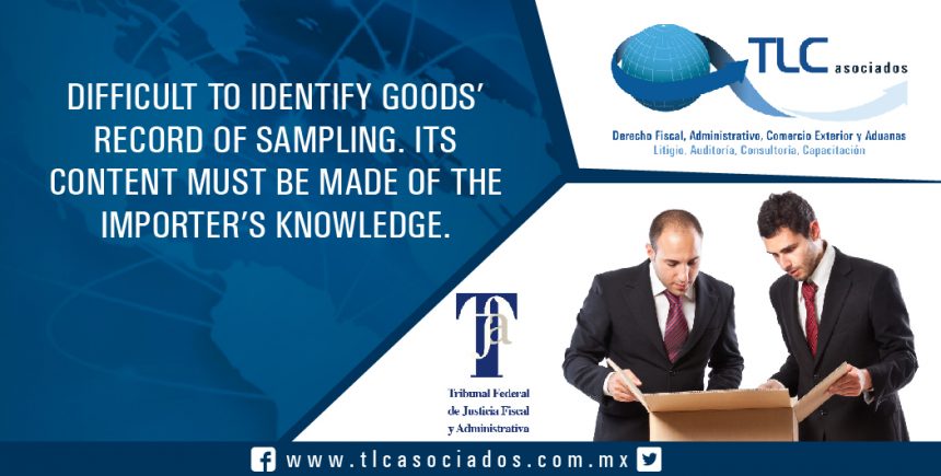 DIFFICULT TO IDENTIFY GOODS’ RECORD OF SAMPLING. ITS CONTENT MUST BE MADE OF THE IMPORTER’S KNOWLEDGE. –