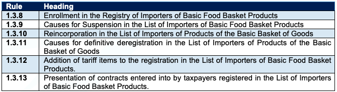 Rule 1.3.14 is added to state that the goods that must comply with the sectorial import and export registers are those listed in Annex 10.