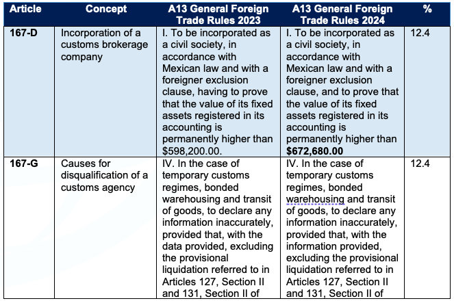 On December 28, 2023, the “General Foreign Trade Rules for 2024 and its Annex 13” were published in the Official Gazette of the Federation, to become effective on January 1, 2024 and will be in force until December 31, 2024..