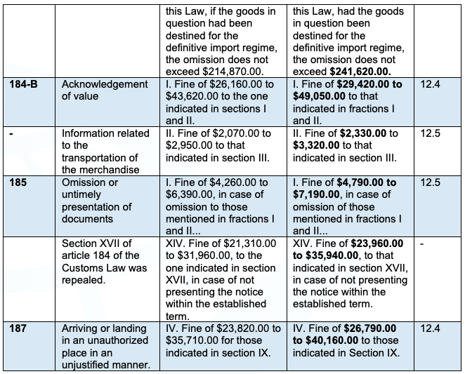 • Rule 1.1.6, section XI incorporates the procedure on the updating of fines and amounts established by the Law and its Regulations (Annex 13).
